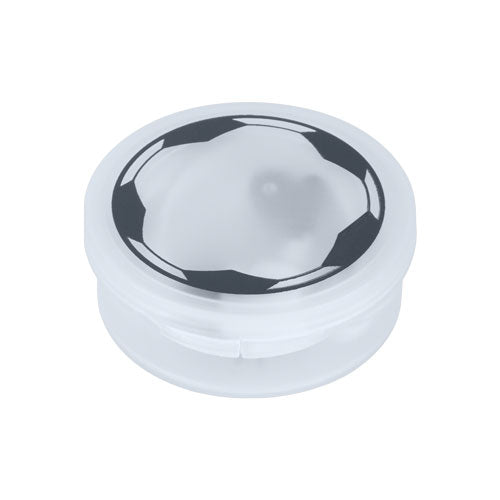 • Estuche redondo con diseño de balón de fútbol