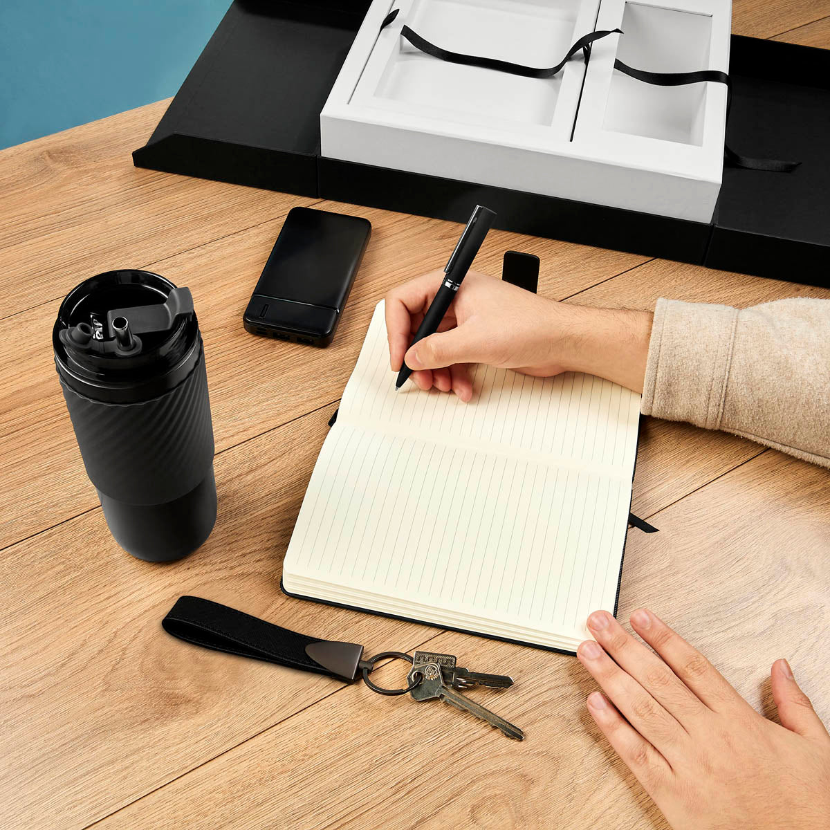 Descubre el SET ESTAMBUL, el regalo ideal para sorprender con estilo y funcionalidad. Presentado en una elegante caja negra con apertura central, combina sofisticación y practicidad. Incluye un termo metálico con doble pared y cierre hermético, acompañado de un popote metálico con boquilla de silicón para disfrutar tus bebidas favoritas. Además, una libreta de 80 hojas con cubierta de curpiel y broche magnético, junto con un bolígrafo metálico con sistema twist, completan este set único que hará sonreír a quien lo reciba. ¡Regala calidad y buen gusto!